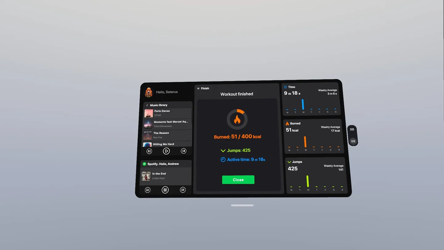 A rhythm-based VR fitness game built around real jumping, timing, and flow. Minimal visuals, physical movement, and intense sessions.